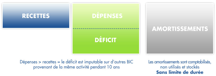 - Si le résultat est déficitaire, la part du déficit générée par l'amortissement est reportable sur les bénéfices futurs sans limite dans le temps.