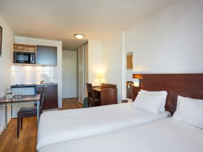 L’établissement se trouve à proximité de toutes les commodités et se compose de 106 appartements meublés et équipés, allant du studio au deux-pièces. Une réception, un service petit-déjeuner, une laverie et un parking sont mis à disposition des résidents. Résidence soumise au statut de la copropriété (loi du 10/07/1965), nombre de lots dans la résidence : 107.